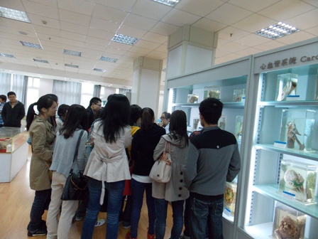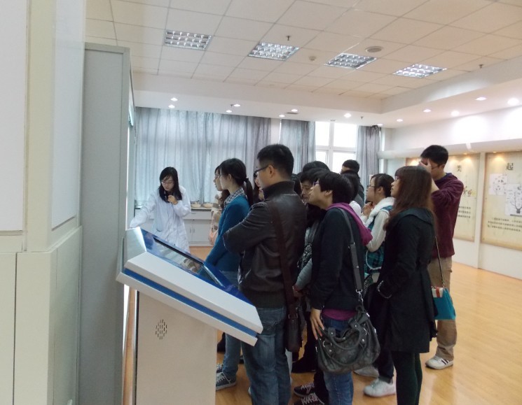 刚进门,一座巨大的大理石雕塑吸引了大家的目光,在基础医学院专业讲解员的引导下,我们明白了这座雕塑的意义所在,这座雕塑是由两根分别代表男性和女性的立柱以及一个孕育在子宫中的婴儿组成,它代表了一个生命的开始,在母体中逐渐孕育、成熟的过程,让我们深刻体会到了生命的珍贵。