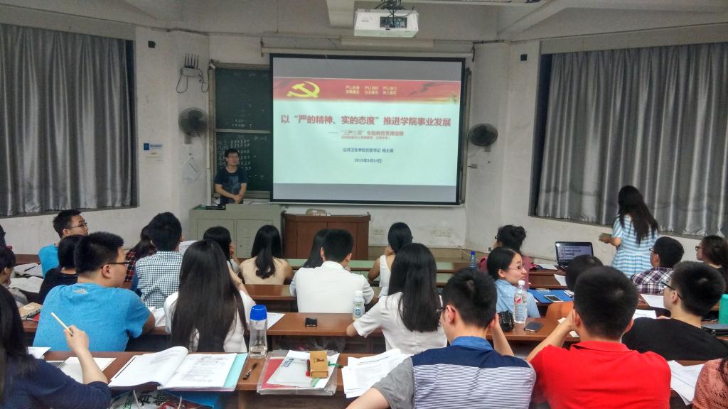 公共卫生学院第六党支部大会。会议共包括四个议题:发展预备党员决议、预备党员转正决议、 “三严三实”专题教育和综合测评评分细则讨论。第六党支部组织委员李若曈主持了此次大会,探花视频