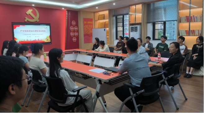 党委委员、副院长李杏莉教授在学院党员活动室为研究生第五党支部师生讲授题为“严守党的政治纪律和政治规矩”的党纪学习教育专题党课,党课由研究生第五党支部书记张伟主持。