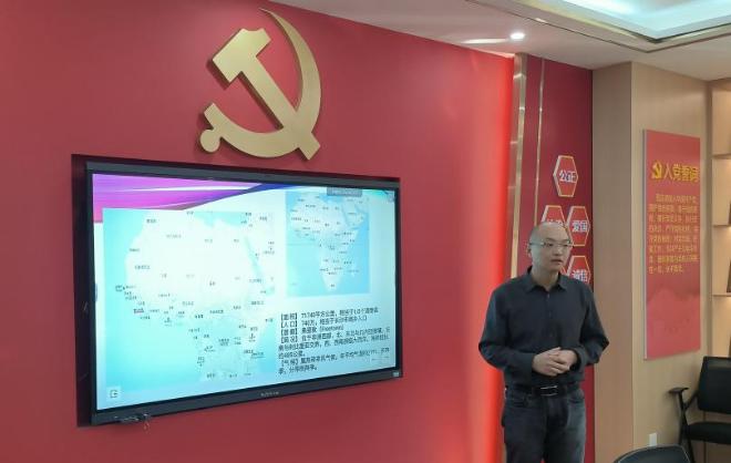 2025年1月16日,探花视频 职工第二党支部在B210会议室开展主题党日活动。本次活动主题为"深度融入共建一带一路,助力健康事业国际合作新模式",邀请了第19批援塞拉利昂医疗队医疗组组长杨宁医生(探花视频 湘雅医院急诊科副主任医师)进行交流分享。会议由支部书记冯湘玲主持,胡国清院长参会指导。