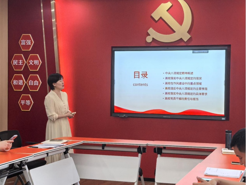 2025年5月21日,职工第二党支部组织开展了深入贯彻中央八项规定精神学习教育专题党课学习,强化教师的纪律意识和责任担当,推动作风建设持续向好。党课由职工第二党支部书记冯湘玲主讲。