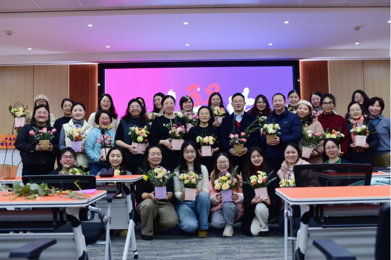 工会在学院学术报告厅精心策划了"手中生花 悦享'湘'华"主题插花活动。全院女教职工齐聚一堂,以花为媒,共赴春日艺术之约,在馥郁花香中展现新时代女性风采。