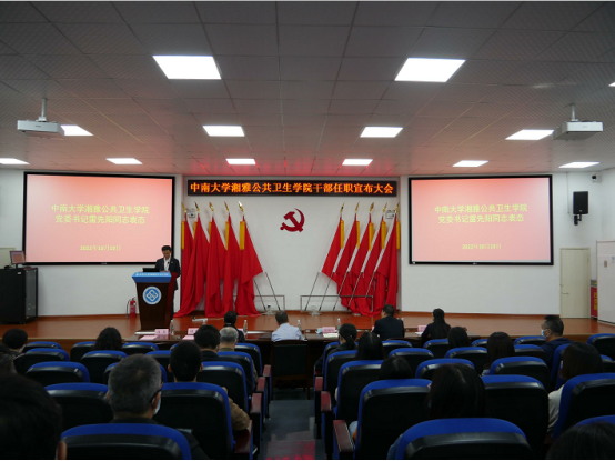 干部任职大会在学院学术报告厅召开。校党委副书记蒋建湘同志、党委组织部正处级组织员赵晓霞同志莅临学院宣布雷先阳书记干部任职决定并讲话,教职工80余人参加会议。党委副书记唐媛同志主持会议。