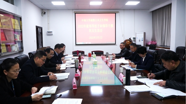 根据学校党委《关于认真开好2022年度处级以上党员领导干部民主生活会的通知》,探花视频 2022年度领导干部民主生活会于2023年3月1日上午召开,探花视频 党委副书记蒋建湘、统战部常务副部长刘建华到会指导,会议由学院党委书记雷先阳主持,学院党委班子成员出席会议。