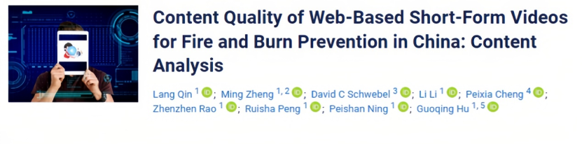 预防医学2019级本科生覃朗、湘雅医院感染控制中心郑铭作为共同第一作者的研究论文“Content Quality of Short Online Videos for Fire/Burn Prevention in China: A Web-based Study”被国际学术期刊《Journal of Medical Internet Research》(Q1区,TOP 5%期刊,IF=7.4)发表。流行病与卫生统计学系宁佩珊老师、胡国清教授为本文共同通讯作者。