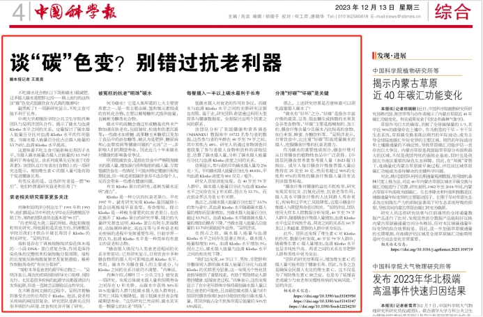12月13日出版的《中国科学报》,在第四版头条的位置,刊发题为《谈“碳”色变?别错过抗老利器》的新闻。文中,对探花视频