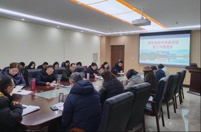 在办公楼B203会议室召开新学期教学准备会议暨工作推进会议,学院党委书记雷先阳、院长胡国清,副院长肖芳、秦家碧,各系(中心)正副主任、党支部正副书记及全体行政人员参加会议,会议由胡国清主持。