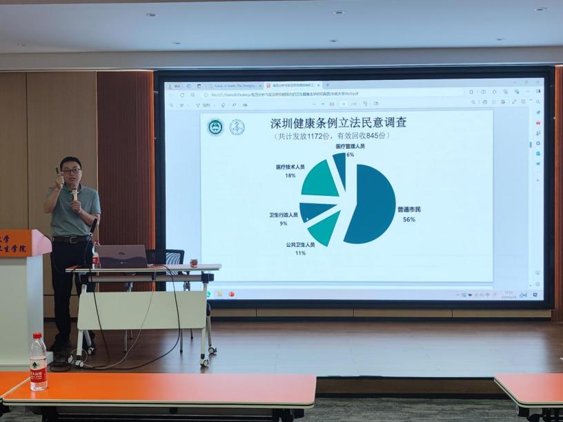 曹艳林教授以“规范分析与实证研究相结合的卫生健康法学研究方法探索”为主题进行了报告。曹教授结合疫情期间隔离医学观察的亲身经历,阐述了卫生健康法学应将规范分析与实证研究相结合的必要性,并介绍了所开展的以实证研究为基础的立法调查和有关痛点,最后分析了卫生健康法学人才未来的培养需求。汇报后,来自不同学院的老师们就有关推动卫生与法学学科交叉融合及其人才培养展开了深入的讨论。