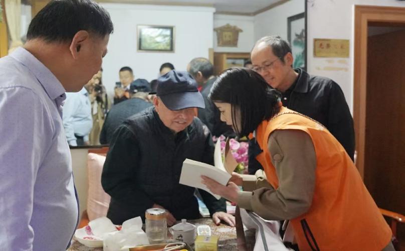活动伊始,夏志平老师介绍了此次活动相关信息,并深情地表示李力夫老人是功臣,是学校、学院的宝贵财富,大家一直牵挂着老同志的健康和生活。随后,杜方冬副处长为老人送上礼物,并详细询问老人生活现状和困难,还留下了饱含关怀的慰问金等。接着,泰康之家集团送上精心准备的礼物,包括实用的拐杖、防滑袜等日用品,还有中粮集团提供的营养丰富的饼干、面条等食品,以及贴心的防诈骗提醒资料、探花视频