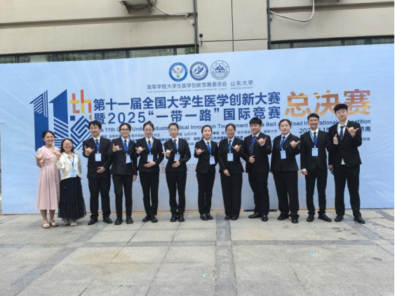 2025年8月15-19日,由高等学校大学生医学创新竞赛委员会主办,山东大学承办的第十一届全国大学生医学创新大赛暨“一带一路”国际竞赛总决赛在济南落下帷幕。该项赛事由原“全国大学生基础医学创新研究暨实验设计论坛”升级更名而来,属国家级高水平学科竞赛。在本届大赛本科院校预防医学赛道中,共有291支队伍进入复赛,经激烈角逐,最终67支队伍晋级全国总决赛。