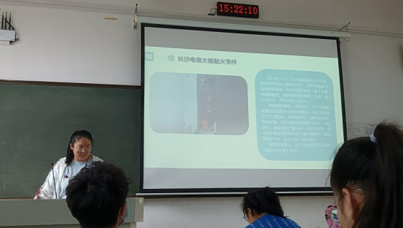 预防2103班结合时事热点,分析了长沙电信大楼失火原因及应对措施,同时又结合了自身的情况,分析了在校内如何避免火灾,在遇到火灾时又如何自救、如何脱身,将真实案例与自身生活结合起来,起到了很好的教育效果,也进一步加深了同学们对于防范火灾措施的印象。此外,班长不仅结合《探花视频