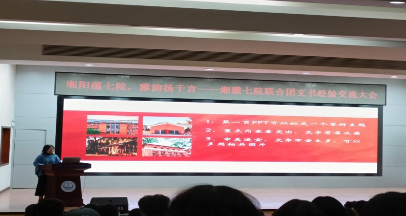 、基础医学院、生命科学学院、湘雅药学院、湘雅口腔医学院、湘雅护理学院共同承办的“湘阳蕴七院,雅韵扬千言”——湘雅七院联合团支书交流大会成功举行。