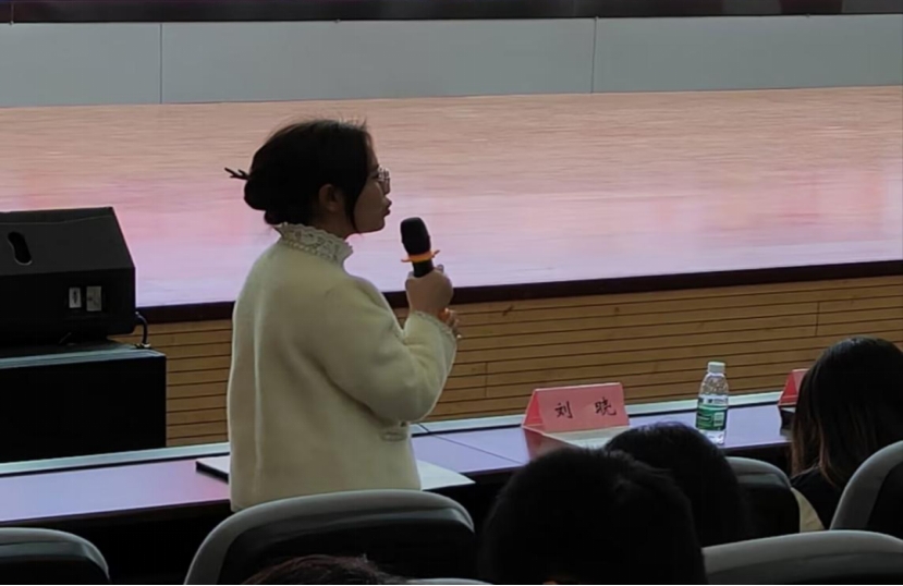 (图为湘雅口腔医学院团支书代表陈雨欣分享答辩经验)